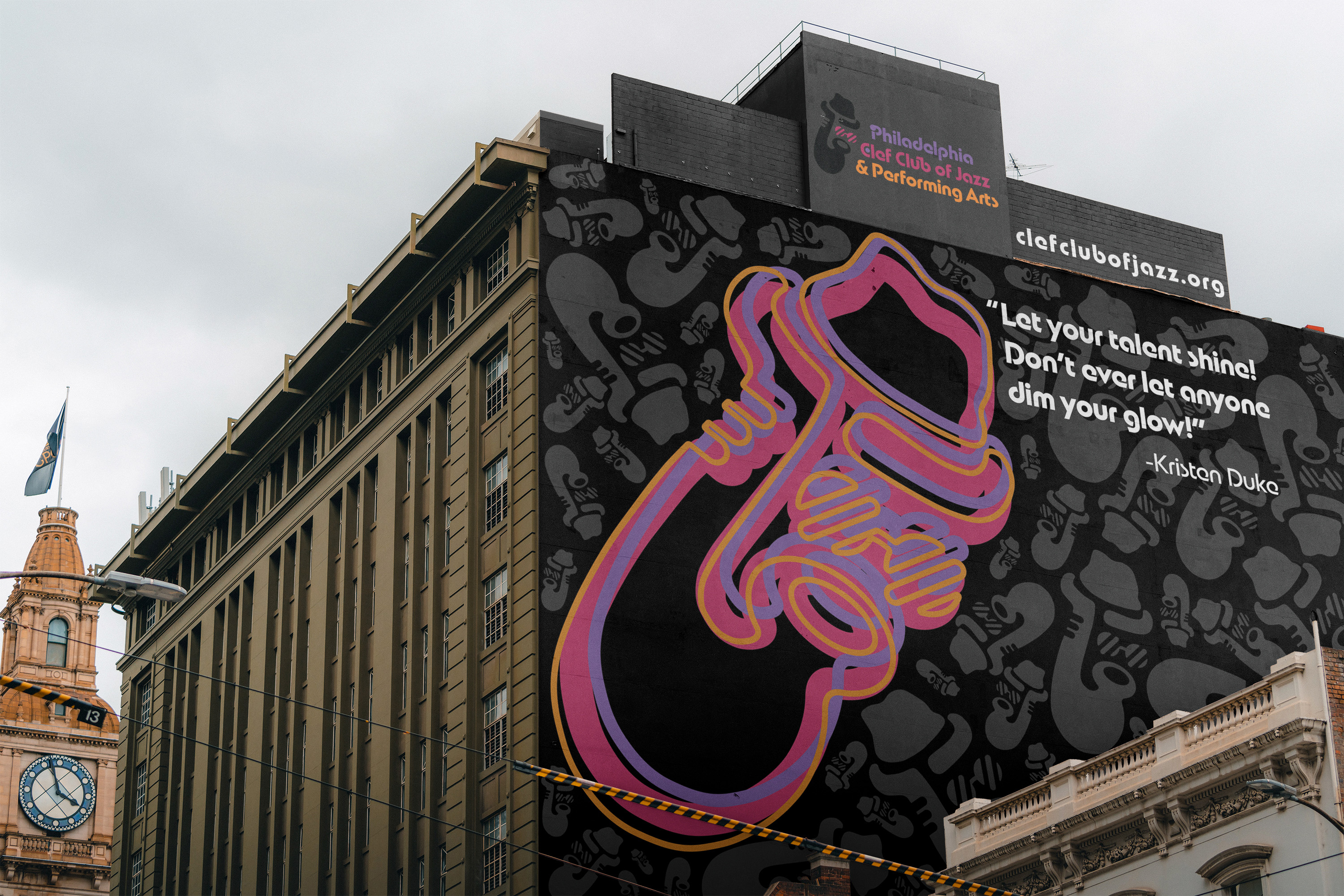 The brand identity for the Philadelphia Clef Club of Jazz and Performing Arts, with a focus on playful elements for youth music education and a sunset-inspired color palette, encompasses the visual and conceptual components that communicate the organization’s mission to engage and inspire young musicians. This identity aims to convey a calm and warm tone that reflects the essence of jazz, fostering an inviting atmosphere for learning and creativity.