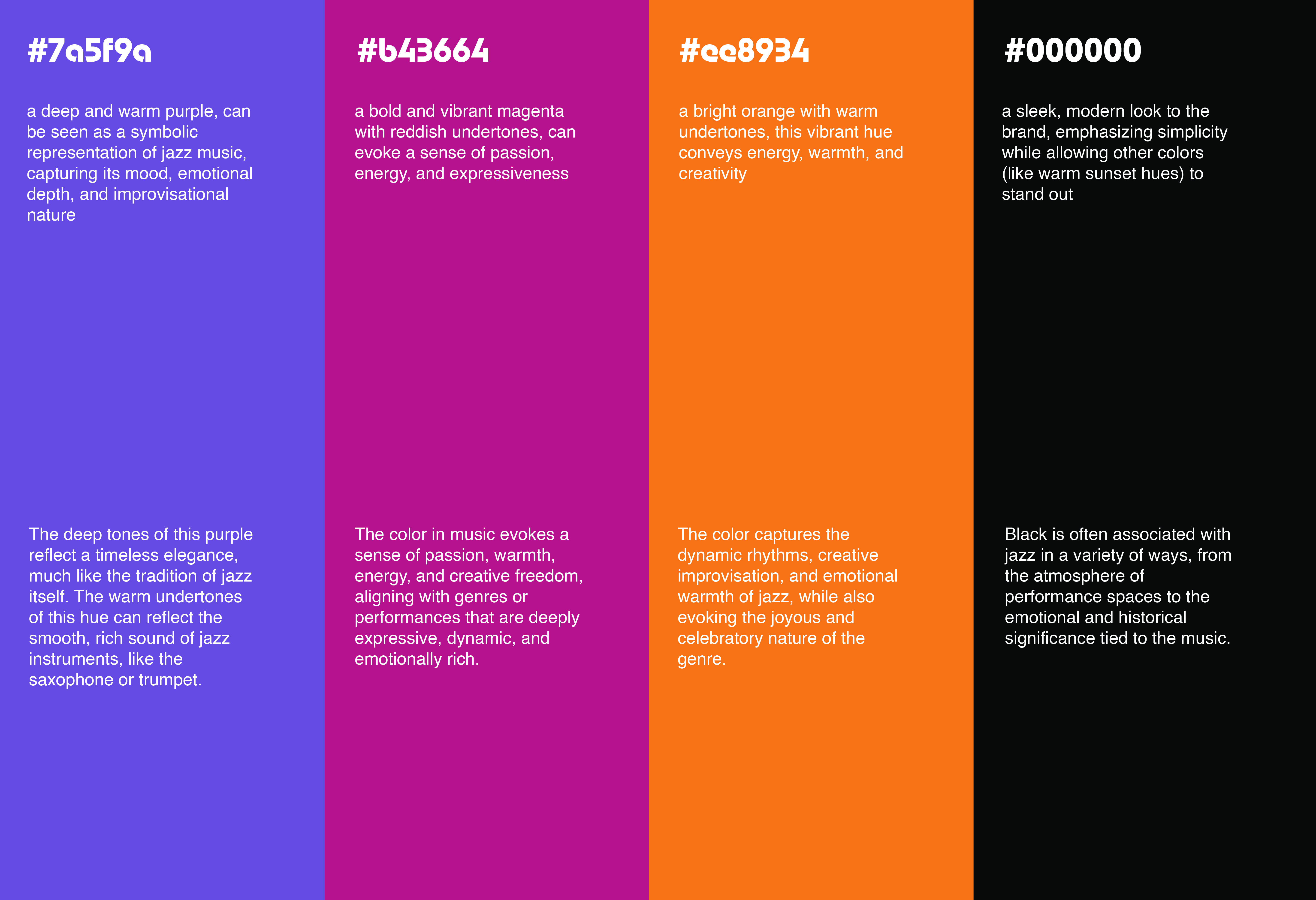 The color #7a5f9a is a rich and vibrant purple with a hint of warmth. Jazz is known for its rich, emotional depth and artistic innovation, and purple has long been associated with creativity, luxury, and mystique. Purple is often linked with imagination and artistry, mirroring jazz’s focus on improvisation and expressive freedom. This color can represent the spontaneity and unique soundscapes created by jazz musicians.